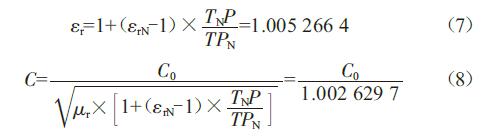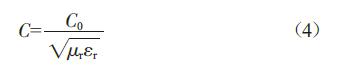 式中,C为电磁波在介质中的传播速度;C0为电磁波在真空中的传播速度;εr为相对介电常数;μr为相对磁导率。