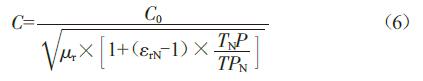 式中,εr为气相介质的相对介电常数;εrN为介质在标准状态下的相对介电常数;TN为标准状态下的温度,即273K;PN为标准状态下的压力,即100kPa;T为过程温度;P为过程压力。