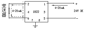 3)变送器与安全栅本安端的连接电缆为二芯屏蔽电缆,芯线截面积>0.5 mm2,电缆允许分布电容为0.8uF。