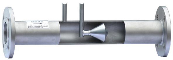 V锥流量计是一种差压式流量仪表,其理论是基于封闭管道中能量之间相互转化的贝努力定律,即在稳定流量的情况下,管道中的流速与差压的开方成正比。