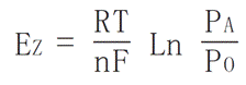 这种氧浓差电动势可用奈斯特(Nerast)公式表示如下: