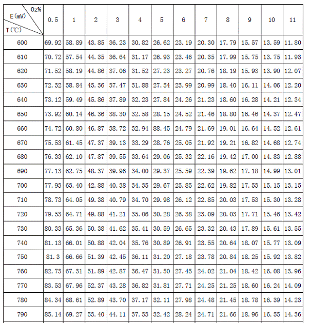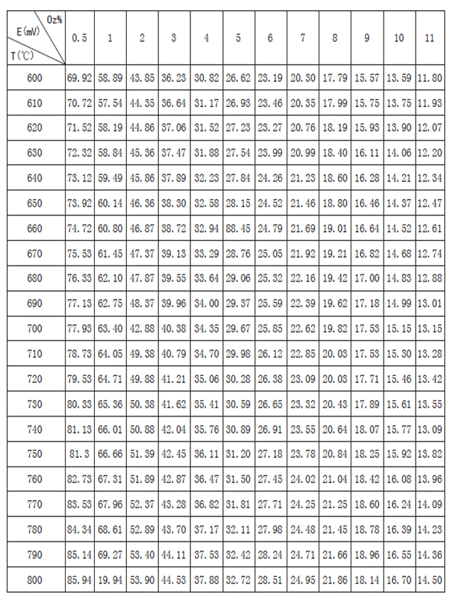 在参比气体气体确定下,氧化锆探头输出的气深度差电动势Ez仅于探头工
