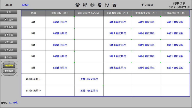原料入库出库计量检测与输送过程的安全连锁控制,油罐区DCS自动化控制系统实现原料存储的动态仓容和库存管理,对原料消耗量及去向目的进行全程监督和记录动态的工艺流程显示画面,操作人员可通过彩色显示器直观地监视整个生产与配料控制过程,包括料仓输送设备的工作状态、秤量数据、混合机或加工设备以及各种工艺闸阀门的工作状态等。