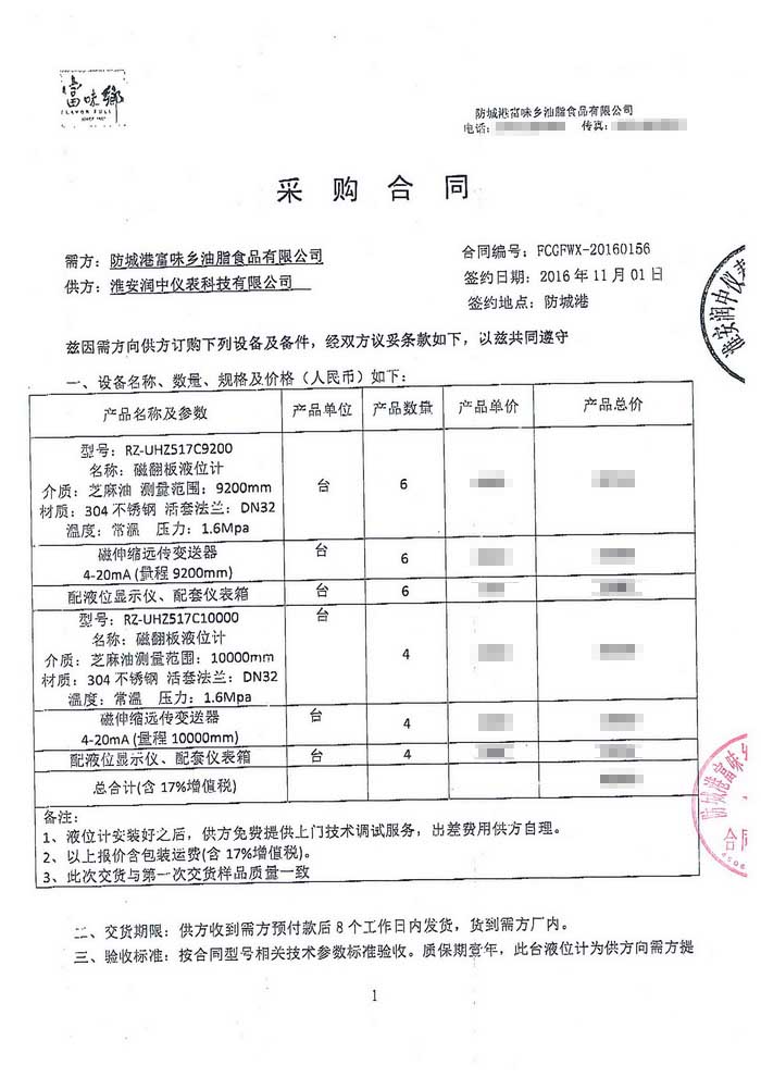 2016年富味乡食品有限公司新建万吨生产线在经过多方考察与层层遴选后,确定采购我公司磁翻板液位计产品,并在我公司提供相应技术指导后顺利安装。