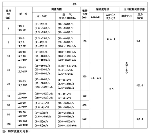 RZ-LZB()B/LZJ系列不锈钢玻璃转子流量计型号规格及技术参数