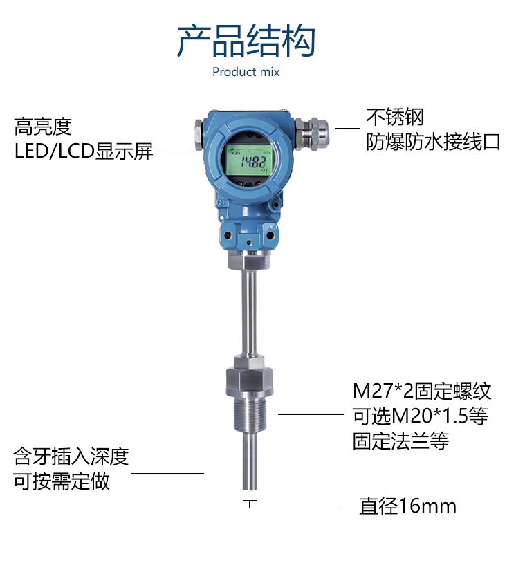 一体化数显温度变送器是一种将工业热电偶、热电阻信号转换为标准输出信号的仪表,采用二线制传输方式,可直接安装在热电偶、热电阻的接线盒内,具有耐震、耐湿、抗干扰能力强等特点,**应用于冶金、石油、化工等领域。