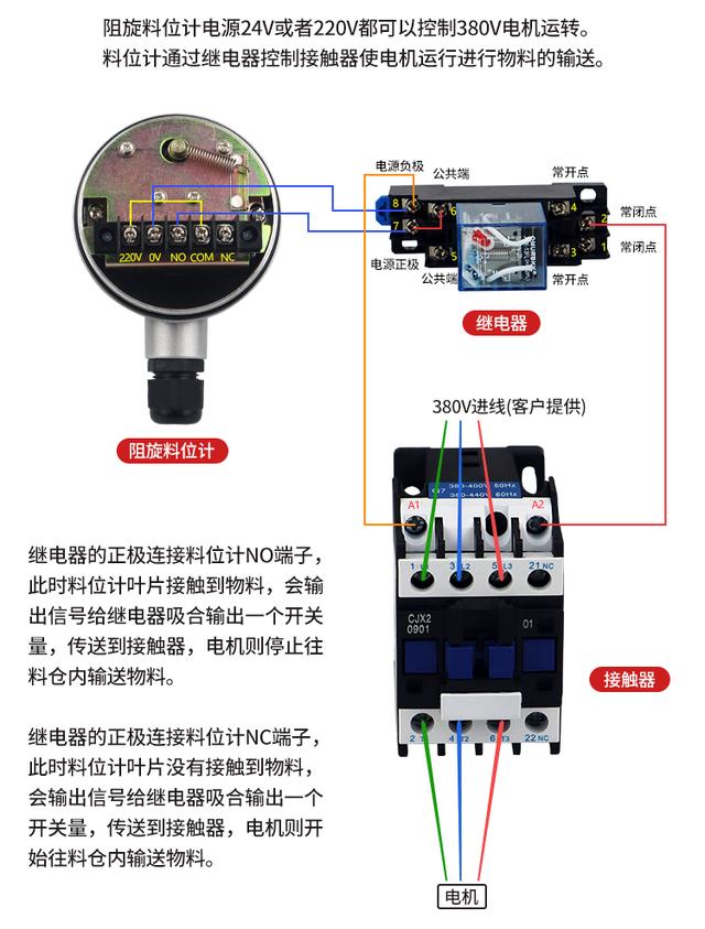 阻旋式料位开关由一个带有滑动离合器的低转速齿轮电动机驱动一个旋转的测量叶片,而该叶片可以感测到产品安装位置处存在的物料。当介质与旋转叶片接触时,旋转会停止,从而使一个继电器触点闭合。当叶片下再被物料覆盖时,旋转就会恢复,继电器返回其正常状态。