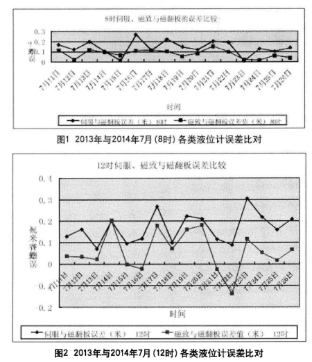 由以上两图得知,伺服液位计误差值曲线较高,液位涨浮较大,计量误差髙达+0.3m,而磁致液位计误差值曲线相对稳定,液位涨浮较小,计量误差在±0.2m之间,较为**。