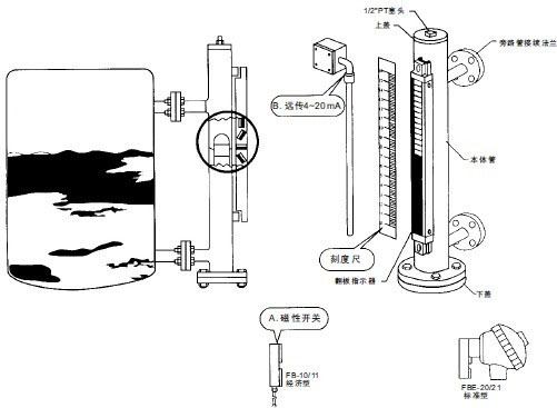 二、液位计现场投用时,要特别留意应先翻开上部闸阀,后翻开下部闸阀。这是由于液位计连通管的底部装有维护浮子的止推弹簧,否则,大差压的作用可能撞碎浮子招致液位计无法运用。