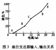 在一定工况下,被测介质及其密度是不变的。它们对液位测量没有影响。从表1中可以看出,一效至五效加热坡度逐渐降低,**压力逐渐减小。为了测定压力、温度对变送器产生的影响,在设备检修是,对液位变送器进行以下实验。 1)对新拆下来的液位变送器在量程范围内,采用精密数字压力计进行标定,标定结果显示:变送器零点产生漂移,线性变坏。变送器输入、输出关系见图2.