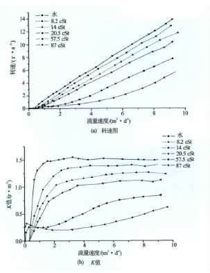 (l)随着粘度的增大,涡轮流量计的启动排量会降低,同时响应的低转速也会下降。