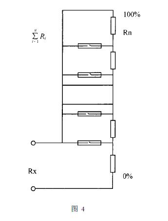 20世纪末,磁翻板现场指示液位计和磁翻板液位变送器的出现给自控设计者在液位计的选型使用上增添了余地。磁翻板液位计的工作原理如图3所示。磁性浮子随着被测液体上下移动, 翻板标尺中的翻板, 受到磁性浮子的吸引而翻转, 翻板上正反两面涂有红、绿两色。红色显示液位指示值, 绿色为空值, 这样可以清晰地显示出液位的高度的现象。磁翻板液位计清除了被测液体对玻璃板液位计的污染造成看不清被测液位高度, 及玻璃板液位计取样角阀易堵塞和选位不当所造成的假液位现象, 而被**地替代玻璃板液位计。磁翻板液位变送器采用磁耦合工作原理, 传感器内装有一组干簧管和精密电阻, 当磁性浮子随液位变化上下移动时, 位于液位处的干簧管依次接通, 使传感器的输出电阻发生变化(如图4所示), 再通过转换电路模块将电阻值转换成4 ~ 20mA电流输出。