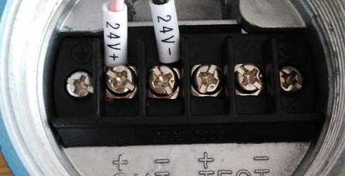 打开压力变送器后盖,会看到有四个接线端子,OUT正负和TEST正负,这里我们接OUT正负,TEST正负是出厂,厂家用来标定压力变送器用的,现场使用就不用管着两个端子的有什么作用,直接OUT正负就行啦。