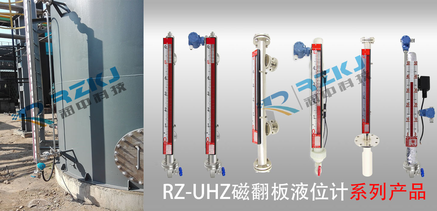 磁翻板液位计通常根据用户的环境选择安装方式,有侧装式、顶装式、悬挂式这三种方式安装。磁翻板液位计有多种叫法,比如磁浮子液位计、磁翻柱液位计,原理相同、润中仪表科技有限公司按习惯统称为磁翻板液位计。