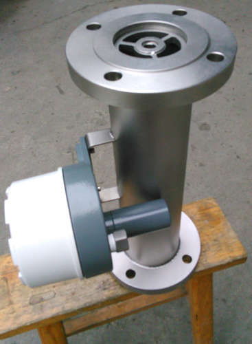 高温结构型是用于介质温度过高而需要对测量管采取保温隔热措施的介质的流量测量。高温型结构是加大了测量管与指示器之间的距离来增加散热、增加隔热材料厚度,保证指示器在允许的环境温度范围内工作。就地型金属管转子流量计可以测量温度达400℃的介质的流量。(2)带阻尼器装置的结构阻尼器结构型用于流量计入口流量(压力)不稳定时的介质流量测量,特别是对于气体的测量。(3)夹套型结构夹套型结构用于对需要伴热或冷却(如高粘度和易结晶)的介质的流量测量。在夹套中通过加热或冷却介质,使低沸点、低凝固点流体不汽化和不结晶。伴热介质的导入和导出连接,标准型要用HG20594-97DN15PN1.6法兰,其它的法兰规格连接可与生产厂标明,夹套的压力等级为1.6MPa。