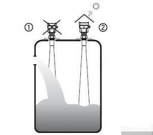 如容器内有很强的气流,如安装在室外且风很大,或容器中有空气涡流,应将传感器安装与导波管内或使用导波雷达物位计。
