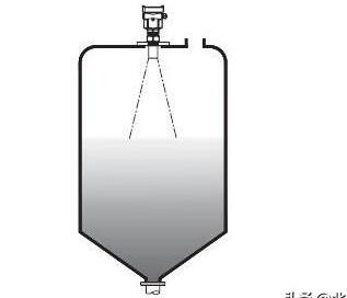 对于锥形容器,且为平面罐顶,仪表的##安装位置是容器顶部中央,这样可以保证测量到容器底部。