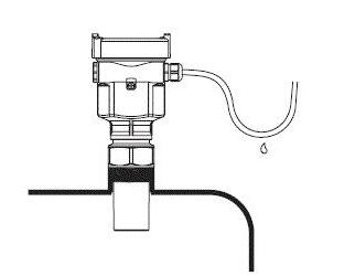 对于安装在室外、潮湿的室内及制冷或加热罐顶上的一体化超声波液位计,为了防潮,应拧紧电缆密封套,而且在进线处使电缆弯曲(入左图所示)