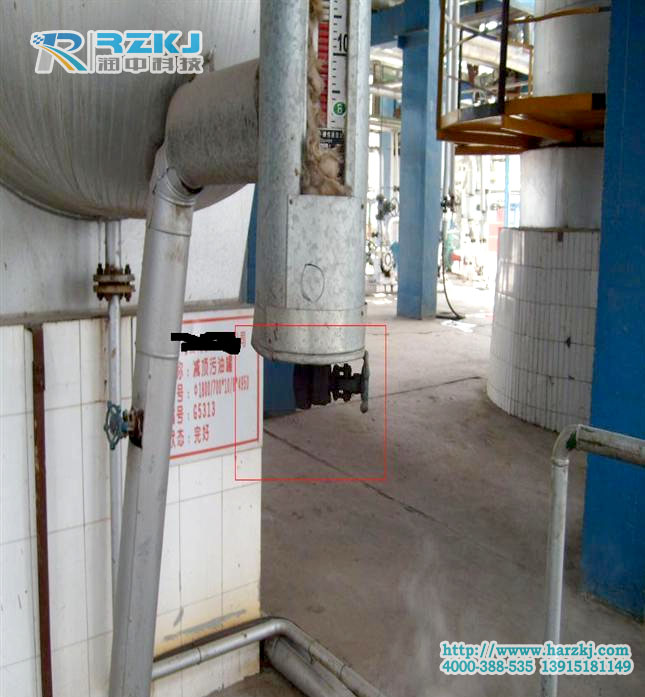 对于磁浮子清洗的方法除了人工拆卸清洗外,偶厂经过对磁翻板液位计进行改造实现了免拆卸的方法,其就是通过磁浮子测量筒上部的丝堵进行改造,安装一个冲洗管线,其可以使用蒸汽和自来水进行贴换,当出现浮子卡阻的时候,只要把磁浮子液位计的正负压测取压阀关闭,打开排污阀,然后开启上部的冲洗阀轮番使用蒸汽和自来水冲洗即可除去磁浮子上吸附的脏污杂质,也能够除去测量筒内壁的杂质,而且不会对人体产生腐蚀性伤害,也减轻了劳动强度。冲洗阀的安装实图如图1所示: