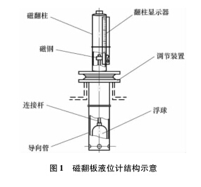 磁翻板液位计是根据磁性原理、 阿基米德浮力定律等巧妙地结合机械传动的特性而开发研制的一种专门用于液位测量的装置。典型的磁翻板液位计结构如图 1 所示。