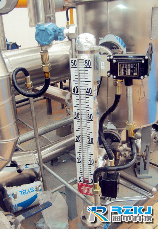 鉴于磁翻板液位计具有被测介质与指示机构完全隔离,密封性能好,防泄漏、适应腐蚀条件下的液位测量等优点,且可靠性高、耐振性能好、结构简单、安装方便、维护费用低,现已在电力、石油、化工、冶金、环保、船舶、建筑、食品等行业得到**应用。本公司用户上海某公司带热压缩器低温多效蒸馏海水淡化的浓盐水、蒸馏水及冷凝水液位测量都采用带远传的磁翻板液位计。为了防止结垢,需在低温的情况下让海水达到沸点,要求海水淡化装置内部处于负压状态,正常运行时为-0.093MPa左右,此为用户磁翻板液位计使用须达到的工艺要求,以下说明即为仪表在负压状态下发生管路漏气的典型故障分析情况。