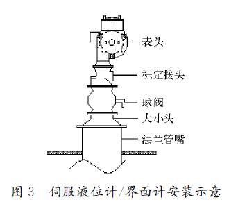 2.3 界面仪表界面测量方式:1)采用伺服界面计,安装示意如图3所示;