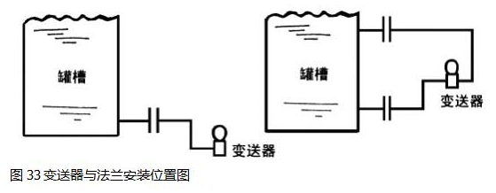 差压式液位变送器安装在流程接头的上方则需要零位负迁移,。法兰式液位变送器的安装与使用见图35。