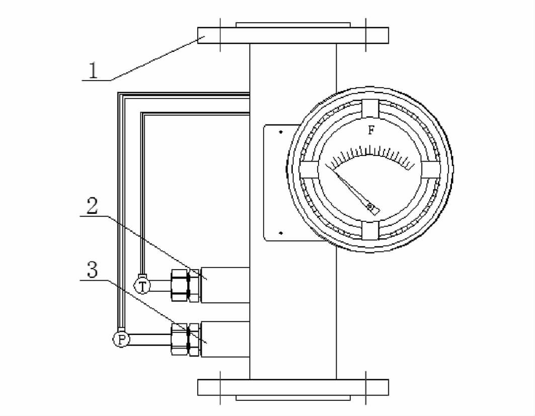 金属管浮子流量计根据用户提供的设计工况参数(如操作温度、操作压力、操作密度等)进行用水或气体流量换算、校准,当现场工况参数与设计工况参数相同或偏离极小时方可进行准确测量。但是现场应用时介质工况参数往往偏离设计参数较大,造成仪表测量准确度严重下降,尤其对于气体介质,由于其操作密度受压力、温度影响较大,仪表测量准确度下降尤其严重。为解决此问题,一般采取重新采购、加工仪表的措施,增加了成本,影响了正常开车生产。因此,如何提供一种金属管浮子流量计,适应现场工艺参数偏离设计参数的情况下,保证现场应用时不会造成仪表测量准确度下降,是本领域技术人员目前需要迫切解决的技术问题。金属管浮子流量计的温压补偿技术应用温压补偿算法,对仪表采集到的流量信号、温度信号、压力信号进行温度压力补偿综合计算,实现准确测量,很大程度上解决了上述问题。