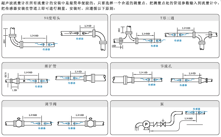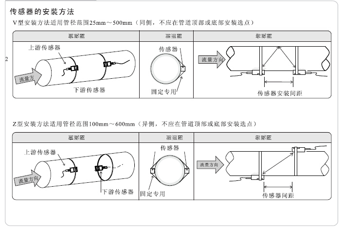 RZ-1158C超声波流量计在所有流量计的安装中是简单方便的,我们中需要选择一个恰当的测量点,通过将测量点的管道参数输入流量计测量系统中,便可以方便地实现传感器在管道上的流量测量。