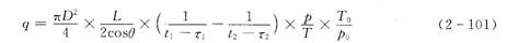 图中,假设管道内径为D,两换能器间的超声传播距离为L,超声传播方向与轴线之间的夹角为θ,则管道内换算成标准工况下的气体流量q可表示为: